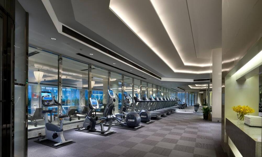 3、照明方向:在灯光的运用的时候一定要禁忌灯光直射人的身体;灯光的光线要求要柔和、温馨让人的眼球感到舒适,由于不少健身动作都是仰卧的,所以建议在照明设计时不要使用照明方向垂直向下的屋顶灯具提供照明,以降低比较明亮的灯光直射入眼对眼睛刺激。半间接半直接照明的节能灯管灯具或深度防眩光设计的LED灯具比较适合。