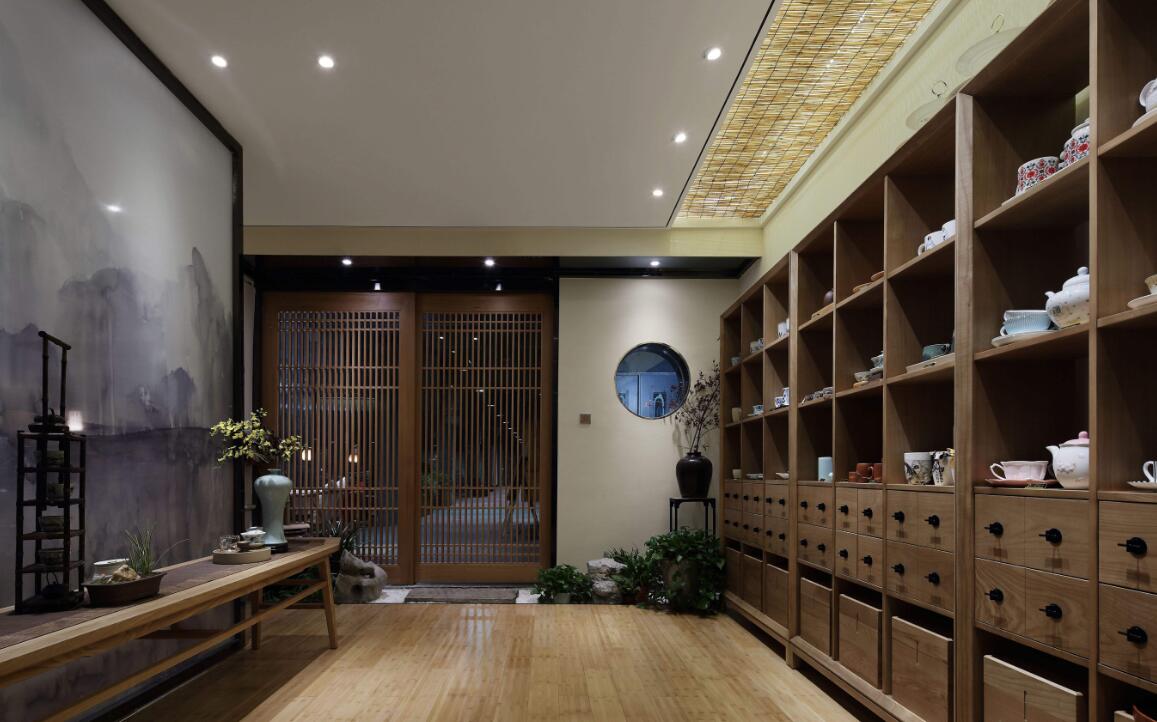室内照度的确定需要参照具体空间进行分析。茶馆空间具备安静、内敛的特质,基于这种情况,其内部的光照度需要比普通的空间低1到2个阶度。