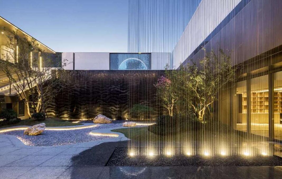 (2)为了增加花园的深远之感,请使用光线照亮周围树木的顶部,以获得缥缈的感觉。同时,对不同高度的树木和灌木丛进行不同程度的照明,以营造深度感和层次感。