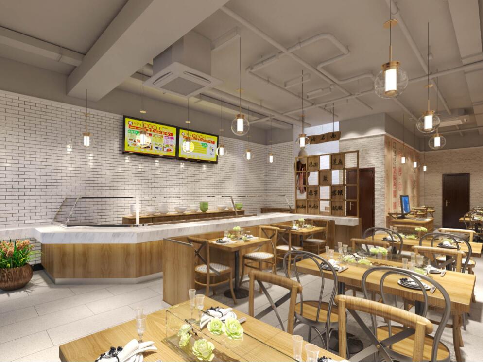 在快餐店的装修中,餐厅的整体风格和餐厅营造的氛围更为重要,尤其是灯光设计的应用。餐厅的整体效果可以广泛突出,灯光设计要注意各种细节,保证灯光设计的效果和风格