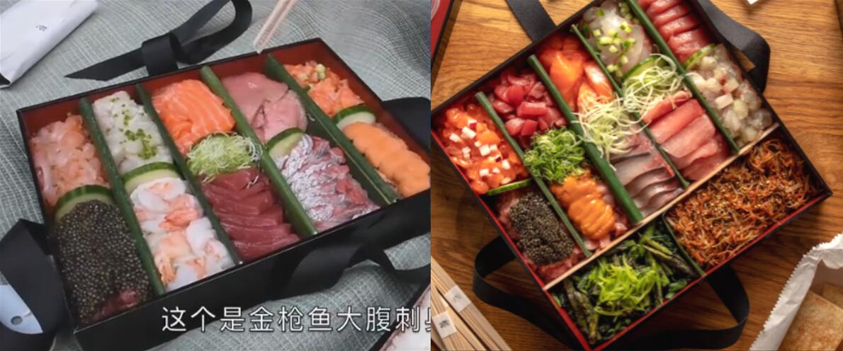 (同一款寿司在不同光环境下的视觉效果)