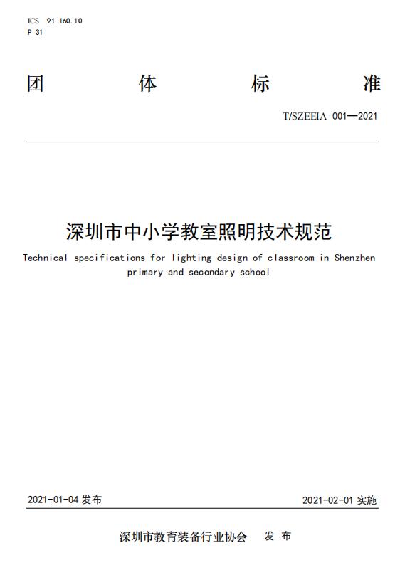《TSZEEIA 001-2021深圳市中小学教室照明技术规范》