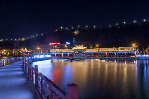洱海月湿地公园和全民健身中心广场是下关市民的后花园。设计施工团队用灯光突出了健身中心的地标地位,强调了岸线的连续性、整体性,并将彩云色彩运用到岸线树木照明上,寓意福气、好运。